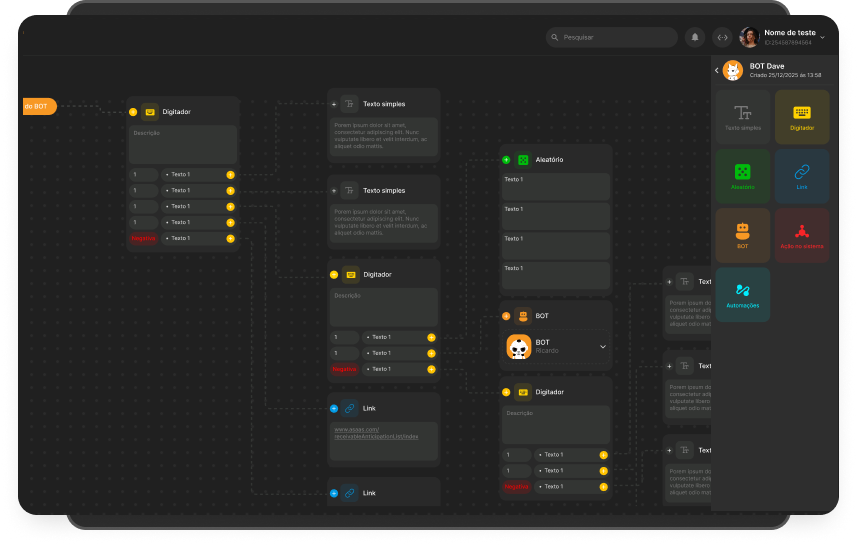 Ganhe tempo, reduza a carga da equipe e mantenha seu atendimento funcionando 24 horas por dia. Ideal para captação de leads, suporte automatizado e qualificação de clientes em escala.