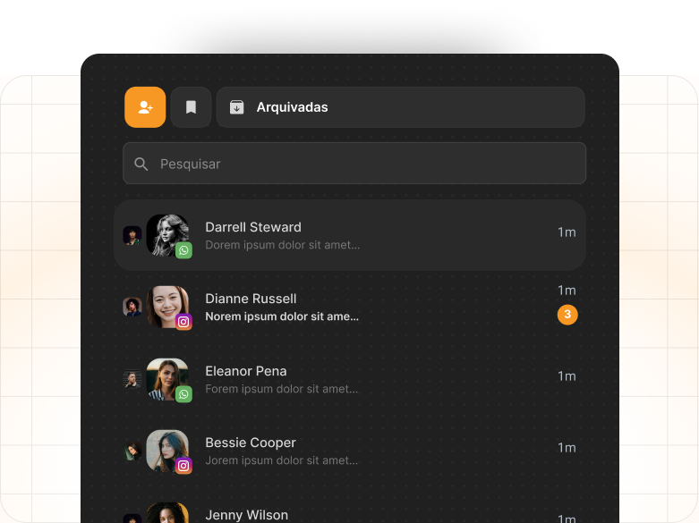 O Ranke unifica seus principais canais de atendimento — WhatsApp, Instagram e Messenger — em uma única plataforma, organizada e simples de usar. Você e seu time visualizam todas as conversas em tempo real, com filtros, buscas e organização por status.