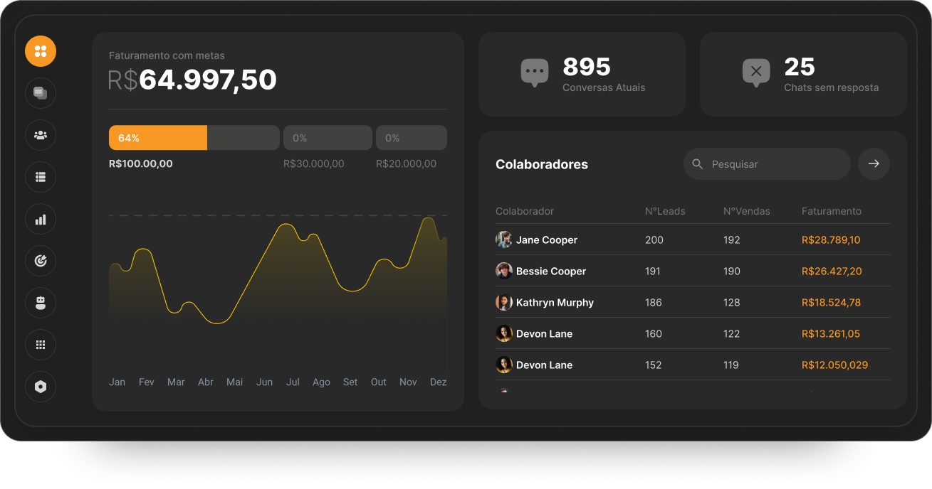 O Ranke acompanha toda a jornada do seu cliente: desde o primeiro contato até o fechamento da venda e o pós-venda. Crie funis personalizados, acompanhe o progresso dos leads, atribua responsáveis e tenha sempre o histórico completo de conversas e interações. Tudo isso com uma interface visual e intuitiva.